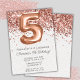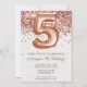 Rose Gold 5th Birthday Party Invitation and rose gold elegant modern 5th birthday party invitation for a 5 year old girl with modern script writing and fun foil balloons with printed texture paper background.