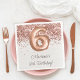Rose gold 6th birthday party paper napkins to decorate the birthday party tables white textured paper printed design.