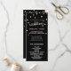 This rose gold and black glam confetti wedding program is perfect for a sophisticated or evening wedding. The design features beautiful faux rose gold foil modern calligraphy and confetti on a black background for a bold glitz and glam look. Include the name of the bride and groom, the wedding date and location, thank you message, order of service, bridal party and an optional "in loving memory" memorial.
