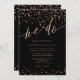 This goregous wedding invitation features rose gold sparkle discs on black background. For more advanced customisation of this design, e.g. changing layout, font or text size please click the "CUSTOMIZE" button above. Please contact me for any questions!