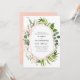 Trendy greenery watercolor bridesmaids luncheon invite with rose gold geometric frame featuring eucalyptus and wild forest ferns. Blush pink florals and watercolor wash reverse complement the design.