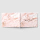 Chic marble look wedding guest book done in rose gold, blush and white. Rose gold tone graphic text reads Guest Book, on the front. Customise to add any text of your own.