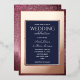 Elegant, modern, luxury glitter wedding invitation with real gold foil rose gold in combination with navy blue and simple calligraphy script.