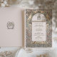 Celebrate your upcoming nuptials with this graceful Art Nouveau Botanical Wedding Invitation, imbued with the soft elegance of rose gold foil. The invitation suite exhibits a harmonious blend of blush and neutral tones, creating a warm, inviting backdrop for the delicate botanical and arboreal motifs. The front of the invitation features a custom monogram encircled by a laurel wreath, symbolising unity and peace. The reverse side unveils a detailed tapestry of florals and architectural Art Nouveau elements, framing the essential wedding information for the couple. Each detail is thoughtfully placed within the ornate borders, providing a perfect homage to the vintage art style, and making it an ideal choice for couples who appreciate the beauty of a bygone era.