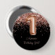 Rose gold black 1st birthday party button to wear.