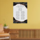 Add your own special touch to this elegant design featuring classic shades of black, white and grey agate with metallic rose gold foil veins. This seating chart design features the bride and groom's names along with the words "Eat, Drink, and Be Merry" and "Please Find Your Seat". Templates are provided for up to seven tables with up to eight names per table.