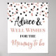 Advice and well wishes for the mummy to be sign for baby shower in a rose gold and black confetti pattern.