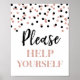 Please help yourself sign for baby shower, bridal shower, birthday party or wedding in a rose gold and black confetti pattern.