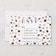 An original, modern faux rose gold foil and black watercolor hand drawn polka dots rsvp wedding card on a white customisable background. Perfect for elegant, chic and modern wedding themes