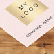 A rose gold background. Personalise and add your business, company logo and a text. Grey letters. If you want the runner without text, use your back-space key to delete.