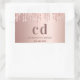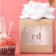 A rose gold background. Decorated with drips, paint dripping look.  Personalise and add a name, monogram initials and a phone number. Block letters.   Dark rose gold coloured letters.