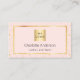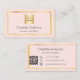 A rose gold, blush pink background and a faux gold frame and gold splashes. Personalise and add your business logo, name and text on front.