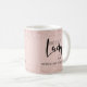 A treasured gift for a boss lady entrepreneur. If a woman in your life has launched a business, here is a thoughtful holiday, birthday, mother's day, or business anniversary gift... a personalised coffee mug with her name below an artistic Boss Lady logo graphic. On a delicate blush pink background, our one-of-a-kind Boss Lady mug features blush glitter overlays on top and bottom for added sparkle. You can easily revise the example name text using the personalisation template.