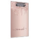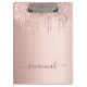 Girly and glamourous. A rose gold faux background with rose gold, pink faux glitter drips, paint dripping look. Personalise and add a name. The name is written with a modern and trendy hand lettered style script with swashes. Dark rose gold coloured letters.