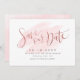 Hand lettered save the date script in faux rose gold foil colour on blush pink watercolor background, elegant and stylish, great modern simple personalised save the date cards.