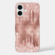 Personalise and add your monogram letters, initials. The monogram initials as a pattern on the background. A girly and feminine rose gold background colour. Decorated with drips, paint dripping look. Dark grey coloured letters.