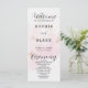What makes this wedding program truly enchanting are the exquisite script fonts used for the words "Welcome," "Ceremony," and "Wedding Party." These ornate elements add a touch of grace and whimsy, infusing the program with a sense of celebration and romance. The interplay between the decorative script and the straightforward block font strikes a perfect balance, capturing the essence of modernity and timeless charm.