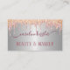 Rose Gold Blush Peach Pink Sparkles Drip Silver Business Card