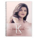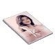 A rose gold, pink faux metallic looking background. Personalise and add your own photo, a name, monogram letter and a year. The name is written in burgundy with a large modern hand lettered style script with swashes. The monogram letter in white. Perfect for school, work, taking notes, as a diary and journalling. To keep the swashes only delete the sample name, leave the spaces or emoji's in front and after the name
