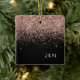 Rose Gold Blush Pink Black Glitter Monogram Ceramic Ornament