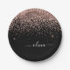 Rose Gold - Blush Pink Black Glitter Monogram Name Paper Plate