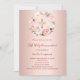 Rose gold blush pink florals cross First Communion Invitation