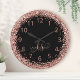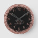 Rose Gold Blush Pink Glitter Glam Monogram Name Round Clock