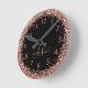 Glam Rose Gold Glitter Elegant Monogram Clock. Easily personalize this trendy chic clock design featuring elegant rose gold sparkling glitter on a black background. The design features your handwritten script monogram with pretty swirls and your name.