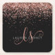 Rose Gold Blush Pink Glitter Glam Monogram Name Square Paper Coaster