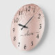 Rose Gold - Blush Pink Glitter Metal Monogram Name Large Clock