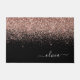 Black and Rose Gold Blush Pink Sparkle Glitter Script Monogram Name and Initial House Doormat. This makes the perfect sweet 16 birthday, wedding, bridal shower, anniversary, baby shower or bachelorette party gift for someone that loves glam luxury and chic styles.