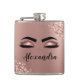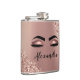 Rose Gold Blush Pink Monogram Glitter Eyelashes Hip Flask