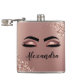 Rose Gold and Blush Pink Faux Foil Metallic Sparkle Glitter Brushed Metal Monogram Name and Initial Eyelashes (Lashes), Eyelash Extensions and Eyes Makeup Flask. This makes the perfect sweet 16 birthday, wedding, bridal shower, anniversary, baby shower or bachelorette party gift for someone decorating her room in trendy cool style.