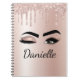 Rose Gold - Blush Pink Faux Foil Metallic Sparkle Dripping Glitter Brushed Metal Monogram Name and Initial Eyelashes (Lashes), Eyelash Extensions and Eyes Back to School Notebook. The design makes the perfect sweet 16 birthday, wedding, bridal shower, anniversary, baby shower or bachelorette party gift for someone looking for a trendy cool style.