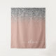 Rose Gold Blush Pink Silver Glitter Monogram Girly Tapestry