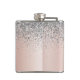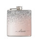 Rose Gold - Blush Pink Silver Glitter Monogram Hip Flask