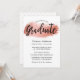 Graduation party invitation with a beautiful black script and a rose gold-coloured brush stroke. The back features a matching rose gold and white polka dot pattern.
