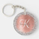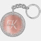Rose Gold Brushed Metal Glitter Monogram Name Key Ring