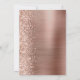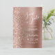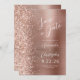 This elegant modern wedding save the date card features a rose gold brushed metal background decorated with faux diamond glitter. The customisable text combines white script and sans serif fonts. The reverse side repeats the rose gold brushed metal and glitter design.