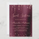 Rose Gold and Burgundy Sparkle String Lights Sweet Sixteen Monogram Name and Initial Birthday Party Invitation. This invitation is perfect for the Rose Gold and Burgundy Sparkle Sweet 16 Birthday Party looking to celebrate in Pink Rose Gold.