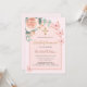 A blush pink background with a rose gold arch. Decorated with a rose gold and blush pink floral, rose flower, green watercolored eucalyptus greenery and butterflies. Personalise and add a name and details.