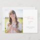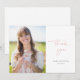 This minimalist graduation thank you card features a large photo and casual script lettering. "Thank you" is written in modern rose gold script, with the graduate's name and graduation year below in gray. To the left, add a large photo of the new grad. The back is blank and can accommodate additional photos or a personalized note to recipients.