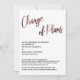 In a bold, modern handwriting font, I've created a graphic reading simply "Change of Plans"; this image has been embellished with a smooth faux-metallic rose gold effect. Below this header are template fields for adding your personal details. All editable text appears in an all-caps sans-serif font, in black; this can be changed if you wish. The back of the card has been covered in a pretty rose-gold and white Moroccan-inspired pattern; an alternate version with a plain background is also available. // 105 //