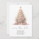 Rose Gold Christmas Tree Save the Date.. Available digitally and printed. A wonderfully festive tree watercolor illustration, stylish handwriting style script and modern minimalism. An informal non-editable script for Its the words Save the Date and the rest of the text you can easily personalise.