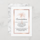 Provide your guests with all of your wedding accommodation or other pertinent details with this elegant enclosure card featuring modern script, charcoal grey text including an artistic palm tree and metallic rose gold copper frame on the front of the card. A white and grey marble background is on the back.