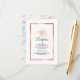 Provide your guests with all of your wedding reception details with this elegant enclosure card featuring modern script, charcoal grey text including an artistic palm tree and metallic rose gold copper frame on the front of the card. A white and grey marble background is on the back.