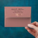 Envelope. Lined on the inside with a textured rose gold diamond pattern background and an elegant script text. ✔Note: Not all template areas need changed. 📌If you need further customisation, please click the "Click to Customise further" or "Customise or Edit Design" button and use our design tool to resize, rotate, change text colour, add text and so much more. ⭐This Product is 100% Customisable. Graphics and / or text can be added, deleted, moved, resized, changed around, rotated, etc... ⭐99% of my designs in my store are done in layers. This makes it easy for you to resize and move the graphics and text around so that it will fit each product perfectly. 📌 (Please be sure to resize or move graphics if needed before ordering) You can also "TRANSFER DESIGN" on other Zazzle products and adjust the design to fit most of Zazzle items. (button is down on the right side of the page) This design is made with high resolution vector and/or digital graphics for a professional print. 📌NOTE: (THIS IS A PRINT. All Zazzle product designs are "prints" unless otherwise stated under "About This Product" on the left side of this page) The design will be printed "EXACTLY" like you see it on the screen and on the product...so please make sure when you do your changes on the resizing of any of the graphics or text that it fits in the areas correctly and that your spelling and wording is how you like it to be in size, colour and font. If you have any questions about the "DESIGN ONLY" or need help please contact me at ✉ siggyscott@comcast.net or visit my store link: https://www.zazzle.com/store/designsbydonnasiggy (Copy and Paste) I'll be happy to help. 📌 ALL OTHER QUESTIONS (shipping, refund, the printing, the product, etc...) please contact Zazzle or the Maker ⭐DIRECTLY⭐. Thank you for the support and stopping by my store - DesignsbyDonnaSiggy. © Donna Siegrist⭐⭐⭐ ZAZZLE promises 100% satisfaction. If you don't absolutely love it, Zazzle will take it back! ⭐⭐⭐ 1-888-8ZAZZLE (1-888-892-9953) Phone hours: Mon - Fri: 9AM - 5PM PT (12PM - 8PM ET)
