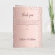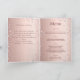 A faux rose gold gradient background with pink diamonds. Welcome text, photo, program, menu and a thank you note on the back.