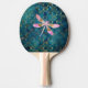 Rose Gold Dragonfly on Turquoise Floral Background Ping Pong Paddle