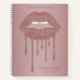 Rose Gold Dripping Glitter Lips Makeup Appointment Notebook with fashion faux blush pink/rose gold glitter drips on a chic background with your custom details and name. Designed by Cedar and String. Perfect for your luxury aesthetic and chic lifestyle. If you need assistance or matching items, please contact us at cedarandstring@gmail.com